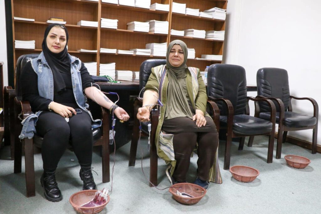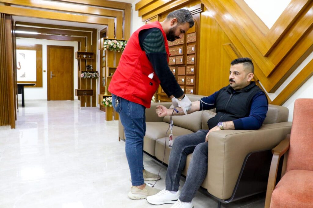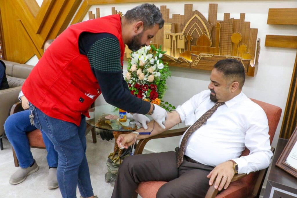 بتوجيه مدير عام المركز الوطني للإستشارات الهندسية احد تشكيلات وزارة الإعمار والإسكان والبلديات العامة المهندس المعماري د.حسن مِدِّب مِجحم نظم المركز الوطني بالتنسيق مع قسم التخطيط والدراسات في المركز وبإشراف شعبة العلاقات والاعلام وحدة تمكين المرأة يوم الاربعاء ٣٠ تشرين الثاني لعام ٢٠٢٢ حملة للتبرع بالدم لموظفيها . وتأتي هذه الحملة في إطار تعزيز دور المركز وموظفيه إتجاه المجتمع وتماشياً مع الدور الإنساني والمسؤولية المجتمعية في مد يد العون والمساعدة للمرضى والمحتاجين التي تحتاج الى الكثير من وحدات الدم. إذ شهدت الحملة إقبالاً ملحوظاً من موظفي المركز على التبرع بدمائهم ترسيخاً للأهداف الإنسانية والإجتماعية النبيلة وحرصا منهم على إداء دورهم الإجتماعي من خلال هذه المبادرة التي تأتي امتداداً لمبادرات مماثلة ينفذها المركز دائماً . مِجحم اكد على الواجب الوطني الذي يقع على عاتق المركز للمساهمة بمثل هكذا مبادرات لانقاذ المرضى والراقدين في المستشفيات كافة ممن هم بالحاجة الماسة لهذا التبرع