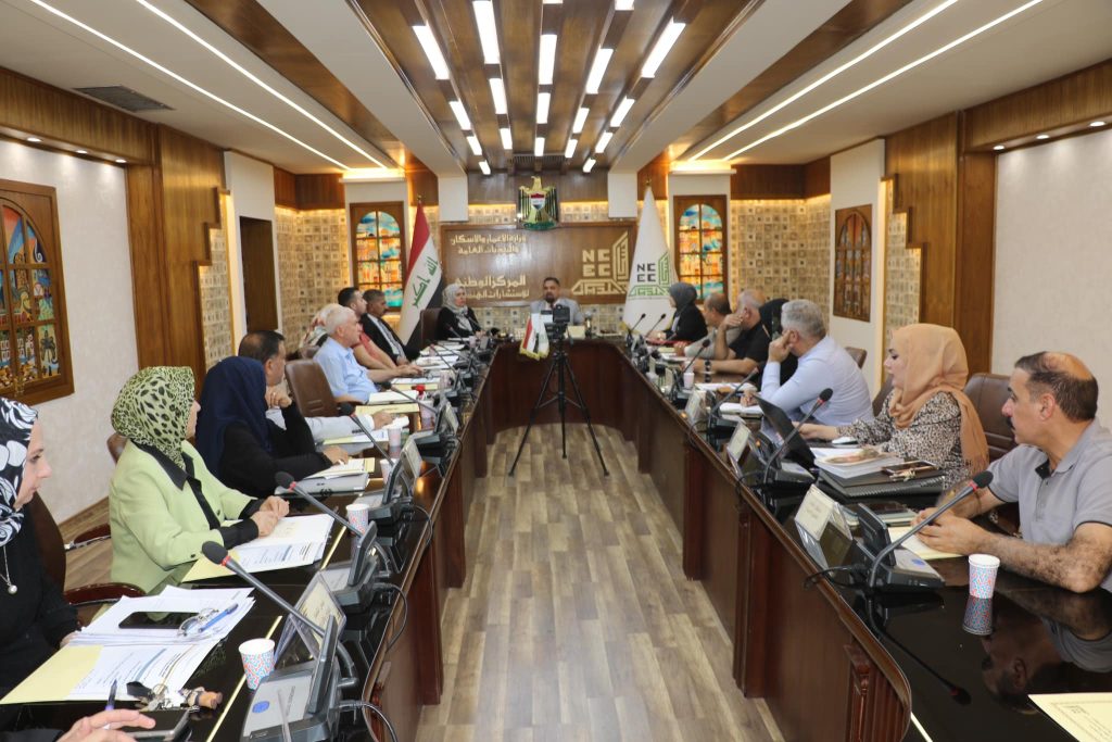 برئاسة المهندس المعماري حسن مِدِّب مِجحم عقد صباح يوم الخميس الموافق ٢٧ تموز لعام ٢٠٢٣ على قاعة الاجتماعات في المركز الوطني للإستشارات الهندسية احدى تشكيلات وزارة الاعمار والاسكان والبلديات العامة الجلسة السابعة للإجتماع الدوري للهيئة الاستشارية في المركز بحضور رؤساء الاقسام وممثلي الوزارة . في بداية الجلسة استذكر سيادتهُ الحادث الاليم الذي وقع على الفريق الهندسي من موظفي المركز عند اداء واجبهم الرسمي والوطني متمنين لهم دوام العافية مؤكداً على تبني كافة المستلزمات الصحية الخاصة بهم لشفائهم التام وان يحفظهم ويحفظ كوادر المركز اجمع . كما اكد سيادته على انجاز كافة التصاميم وجداول الكميات المسعرة وغير المسعرة للمشاريع الجديدة التي وقعت على عاتق المركز بالصورة المطلوبة والتي تسهم في مواكبة البرنامج الحكومي وترفع من الواقع العمراني والخدمي . كذلك مناقشة مجمل مشاريع المركز ووضع الحلول المناسبة لها من ضمنها مشروع الحي الدبلوماسي ومشروع المدارس لجميع المحافظات العراقية وباقي المشاريع التي وقعت على عاتق المركز . إضافة الى مناقشة الامور المالية والقانونية والادارية ووضع الحلول الانية بما ينسجم ويتلائم مع الضوابط النافذة
