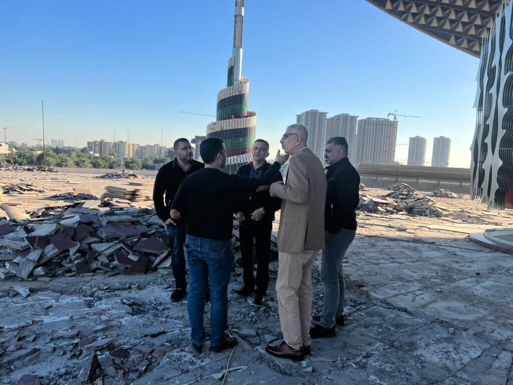 مدير عام المركز الوطني للإستشارات الهندسية المهندس المعماري مازن عبد الفتاح نعمة وممثل وزارة الاعمار والاسكان والبلديات العامة في اللجنة الوزارية المكلفة بأعمال تأهيل ساحة الاحتفالات الكبرى ونصب الجندي المجهول في بغداد يشرف يوم الاثنين الموافق ٢٠٢٣/١٢/٤ ميدانياً على اعمال تحديد وتقييم الاضرار لنصب الجندي المجهول ووضع الآلية والبرنامج الزمني لأعمال اعادة تأهيله وتم ذلك بحضور السيد مدير عام دائرة المشاريع في أمانة بغداد المهندس يقظان الوائلي ومشاركة كوادر دائرة المهندس المقيم لأمانة بغداد والكادر الإستشاري لدائرة الاعمار الهندسي وممثلين عن الشركة المنفذة