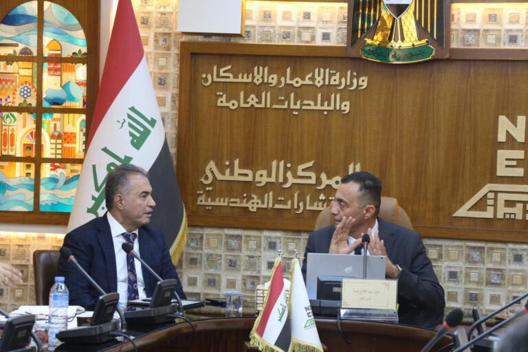 إشارة الى توجيه معالي السيد وزير الإعمار والإسكان والبلديات والاشغال العامة الأستاذ بنكين ريكاني المحترم المركز الوطني للإستشارات الهندسية يعقد يوم الاربعاء المصادف ٢٠٢٣/١٢/٦ إجتماعاً مشتركاً تضمن إجراء حوار فيديوي لتحديد التعارضات ووضع الآلية والبرنامج الزمني لإنجاز أعمال الاعداد والتحديث لتصاميم ابنية المستشفيات من قبل كوادر المركز والمباشرة بأعمال التدقيق من قبل دائرة الاعمار الهندسي وتكليف المركز الوطني للمختبرات الانشائية بإجراء الفحوصات المختبرية للمواقع المقترحة من قبل وزارة الصحة لمشروع إنشاء مستشفيات القرض الصيني سعة ١٠٠ سرير في محافظات العراق ضمن مشاريع البرنامج الحكومي . وحضر الإجتماع مدير عام المركز المهندس مازن عبد الفتاح ومدير عام دائرة العقود في وزارة الصحة والسادة رؤساء أقسام هندسة العمارة وإدارة المشاريع وهندسة الخدمات ونظم المعلومات في المركز والكادر الاستشاري لوزارة الصحة والكادر الاستشاري المكلف بالعمل