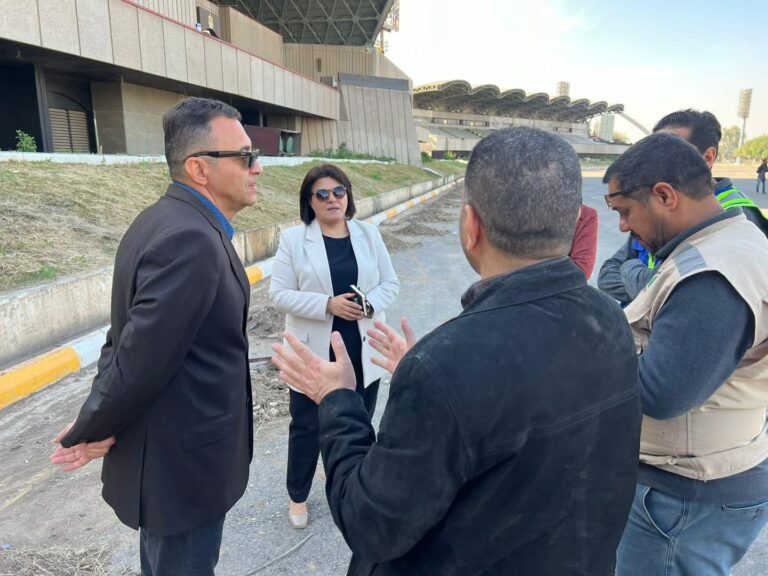 مدير عام المركز الوطني للإستشارات الهندسية المهندس المعماري مازن عبد الفتاح يرافق السيدة المستشارة في مكتب دولة رئيس الوزراء المشرفة على مشروع أعمال تأهيل وترميم ساحة الأحتفالات الكبرى في بغداد يوم الخميس الموافق ٢٠٢٣/١٢/٧ للإطلاع والإشراف على أعمال إعادة التأهيل لأبنية المنصة الرئيسية والمنصات الجانبية والأبنية الملحقة لمشروع إعادة تأهيل ساحة الأحتفالات الكبرى وتم الأطلاع على معوقات العمل ووضع السبل لمعالجتها والتأكيد على الشركة المنفذة لإنجاز الأعمال ضمن المواصفات المطلوبة والتوقيتات المحددة لتنفيذ المرحلة الاولى من أعمال التأهيل. إذ حضر الزيارة مدير المشروع (شركة آشور للمقاولات) والمهندس المقيم (دائرة المباني) ورئيس الفريق الإستشاري (دائرة الإعمار الهندسي)