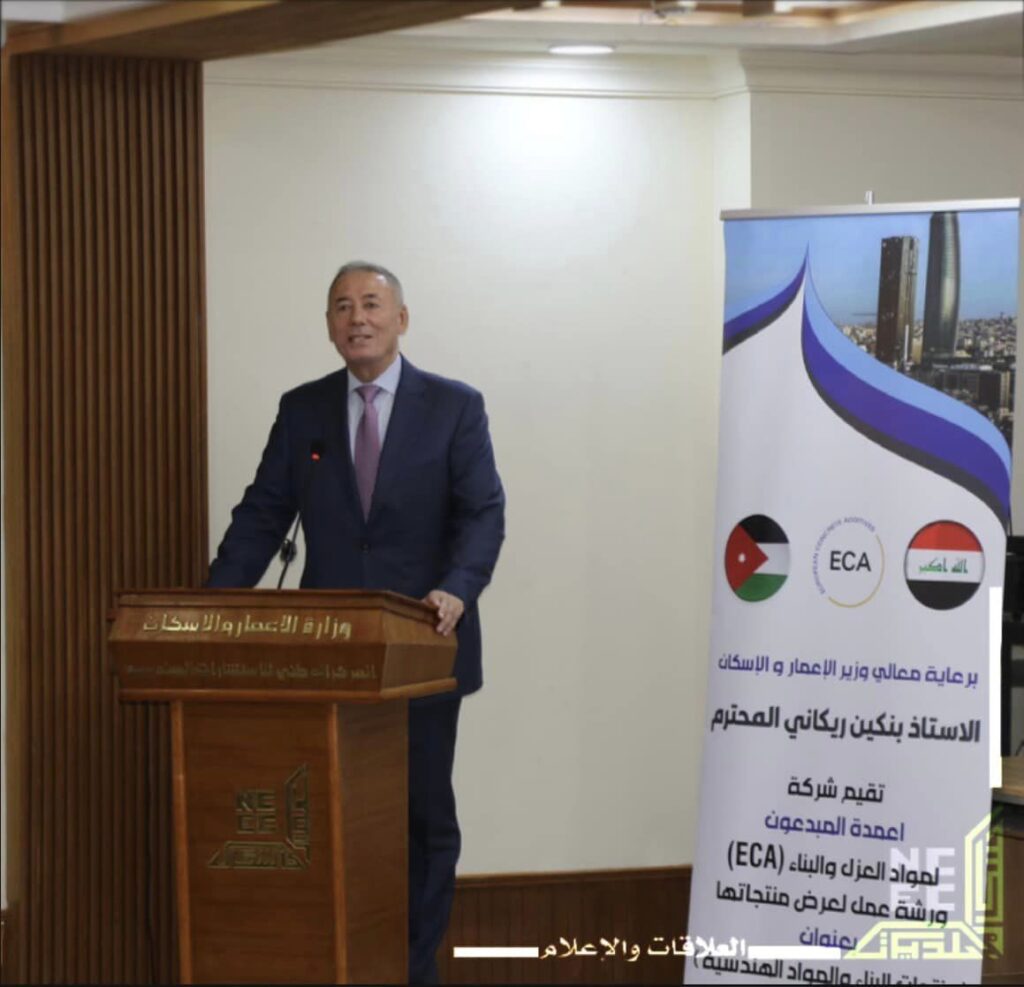 برعاية معالي وزير الإعمار والإسكان والبلديات والأشغال العامة الأستاذ (بنكين ريكاني) المحترم، أقام المركز الوطني للإستشارات الهندسية أحد تشكيلات الوزارة يوم الثلاثاء الموافق ٣٠ تموز ٢٠٢٤ بالتعاون مع مركز التطوير والتدريب ورشة عمل لعرض منتجات شركة أعمدة المبدعون الأردنية لمواد العزل والبناء، بحضور الأستاذ (متين الجادرجي) وكيل الوزارة للشؤون الإدارية وسعادة السفير الأردني في بغداد ومدير عام المركز الوطني للإستشارات الهندسية المهندس المعماري (مازن عبد الفتاح نعمة) والسيد مدير هيأة تنفيذ المدن الجديدة ومدير مركز التدريب والتطوير وعدد من مدراء الشركات المختصة بمواد البناء والكادر الهندسي المتقدم للمركز