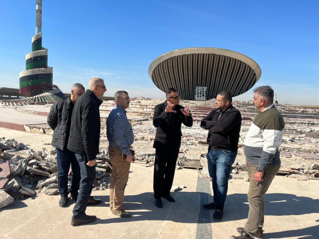 مدير عام المركز الوطني للإستشارات الهندسية المهندس المعماري مازن عبد الفتاح نعمة وممثل وزارة الاعمار والاسكان والبلديات العامة في اللجنة الوزارية المكلفة بأعمال تأهيل ساحة الاحتفالات الكبرى ونصب الجندي المجهول في بغداد…
